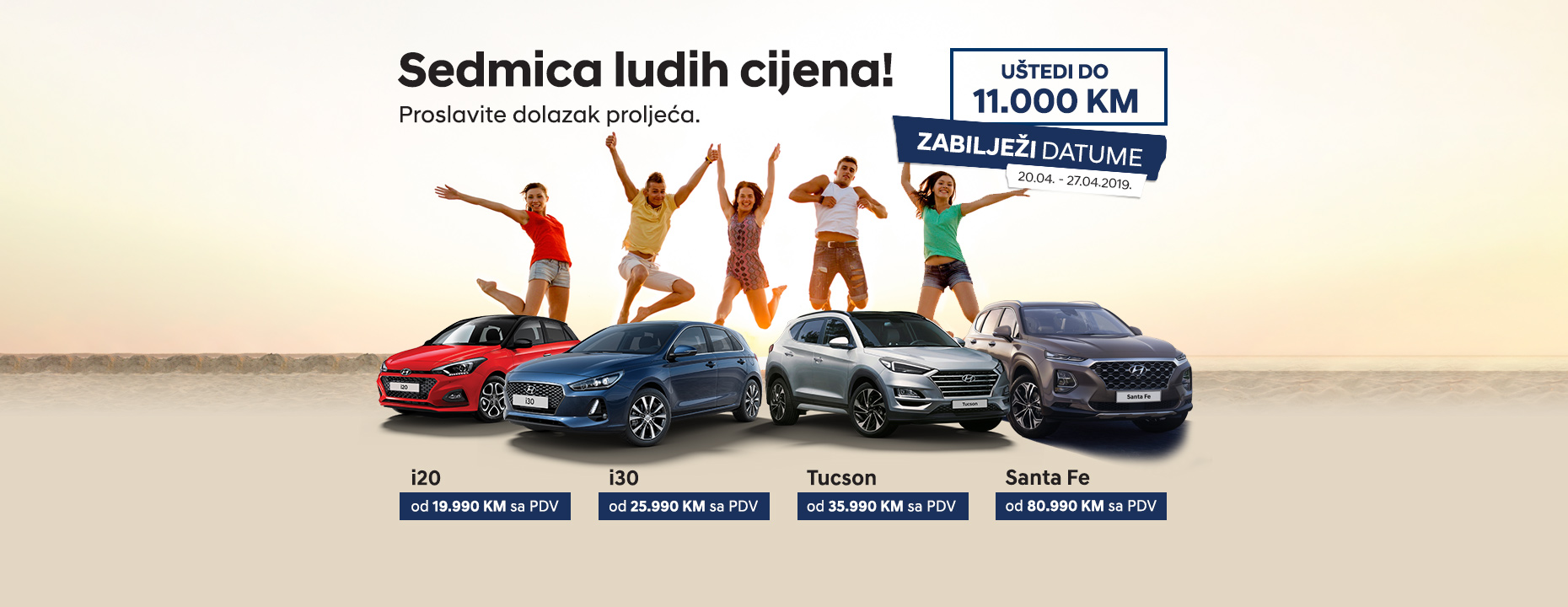 Posjetite nas tokom ove posebne sedmice u Sarajevu, Mostaru, Banja Luci, Doboju i Brčkom i iskoristite nevjerovatno ludu Hyundai proljetnu ponudu.